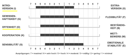 Mithilfe dieses Verfahrens bekommst du einen sehr differenzierten Einblick in deine Persönlichkeits-Struktur. Wir tauchen tief in deinen Charakter ein, erfahren etwas zu den wichtigsten Motiven, die alltäglich deine Entscheidungen beeinflussen und können mithilfe des CareerProfilers sogar konkrete Job Ideen entdecken, die optimal zu deiner Persönlichkeit passen.